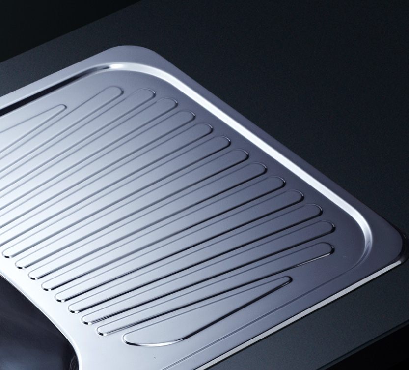 水槽四邊條采用一次成型的折彎加強筋工藝,雙倍堅固,承重力更強,解決了普通焊接工藝容易出現的凹點、脫焊、易割手等問題。專業配置的密封條和固定夾,安裝平整度高,不滲水,不松動
