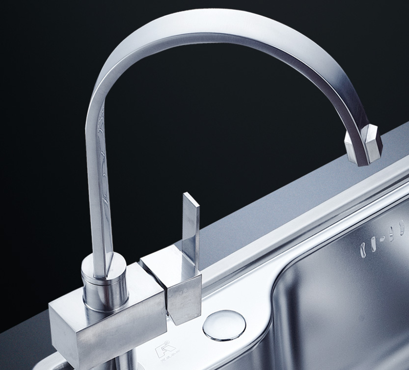 阿發(fā)水槽立邊采用國際先進的10-25°小R角一次成型拉伸技術,更具立體感與時尚潮流,亦能充分擴展水槽利用空間;一次成型拉伸技術,杜絕了焊接工藝易產生的水槽生銹,脫焊事故,充分保障水槽50年以上的使用壽命
