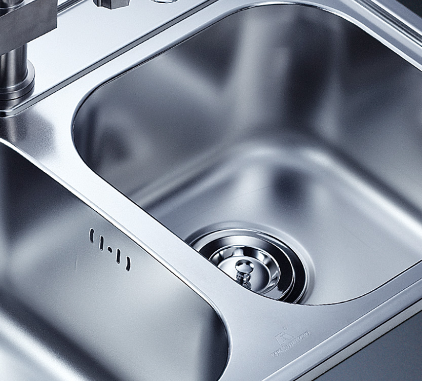 水槽四邊條采用一次成型的折彎加強筋工藝,雙倍堅固,承重力更強,解決了普通焊接工藝容易出現的凹點、脫焊、易割手等問題。專業配置的密封條和固定夾,安裝平整度高,不滲水,不松動