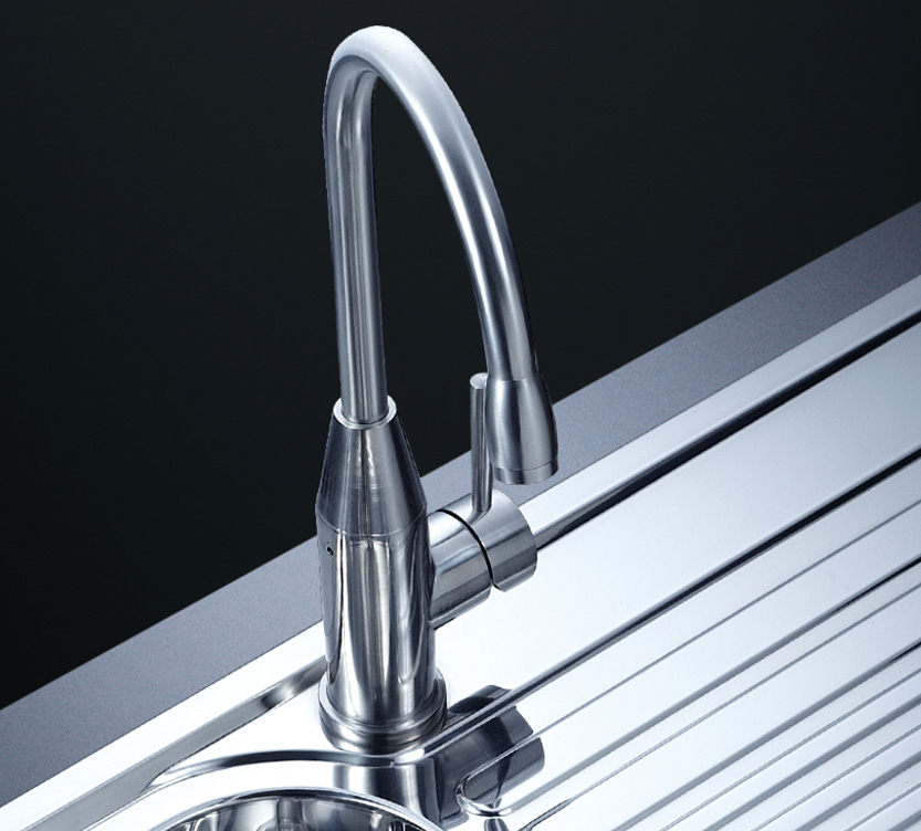 阿發水槽立邊采用國際先進的10-25°小R角一次成型拉伸技術,更具立體感與時尚潮流,亦能充分擴展水槽利用空間;一次成型拉伸技術,杜絕了焊接工藝易產生的水槽生銹,脫焊事故,充分保障水槽50年以上的使用壽命