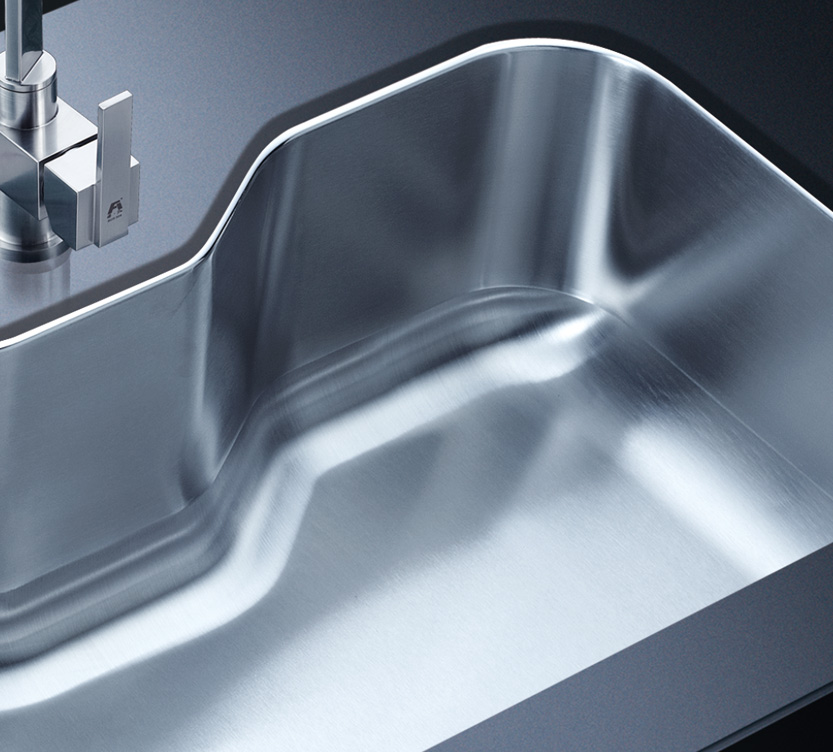 阿發(fā)水槽立邊采用國(guó)際先進(jìn)的10-25°小R角一次成型拉伸技術(shù),更具立體感與時(shí)尚潮流,亦能充分?jǐn)U展水槽利用空間;一次成型拉伸技術(shù),杜絕了焊接工藝易產(chǎn)生的水槽生銹,脫焊事故,充分保障水槽50年以上的使用壽命