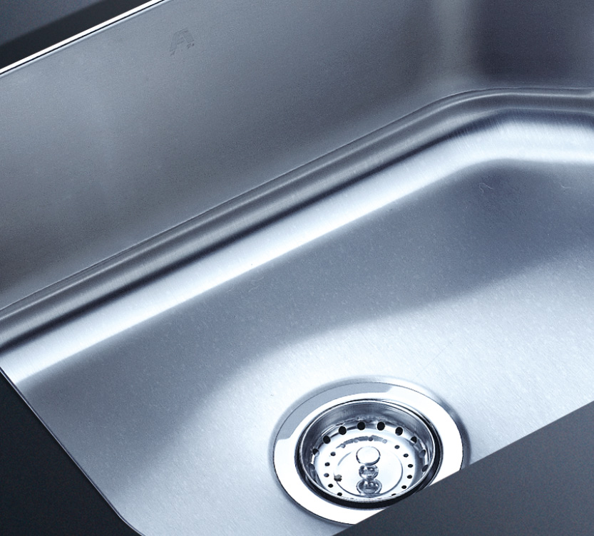 阿發水槽整體經拉絲處理,質地更加光滑,視覺更加柔和。能有效抵擋異物撞擊,刮傷及磨損,防止油污沾染,常用常新;柔和的光澤令水槽平添高雅氣質,更能避免鏡面材質反射的光污染