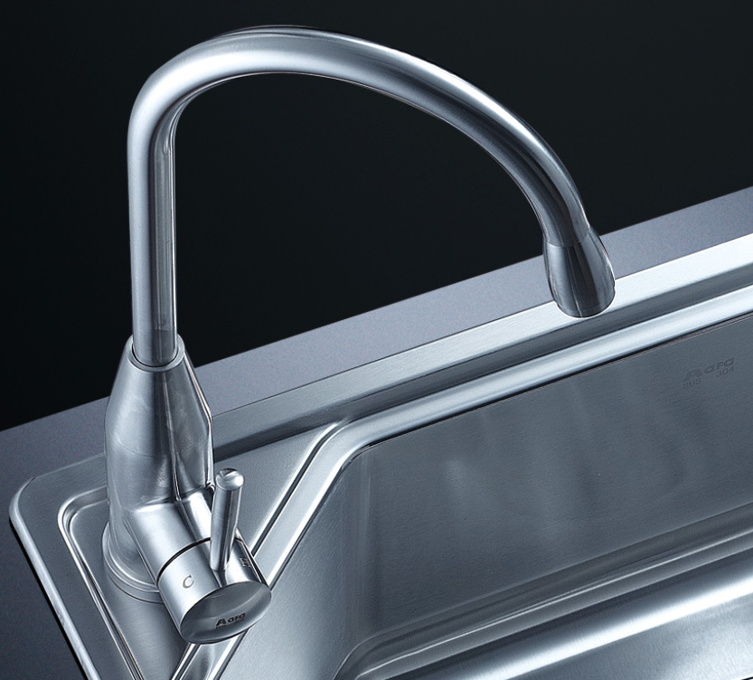 阿發水槽整體經拉絲處理,質地更加光滑,視覺更加柔和。能有效抵擋異物撞擊,刮傷及磨損,防止油污沾染,常用常新;柔和的光澤令水槽平添高雅氣質,更能避免鏡面材質反射的光污染