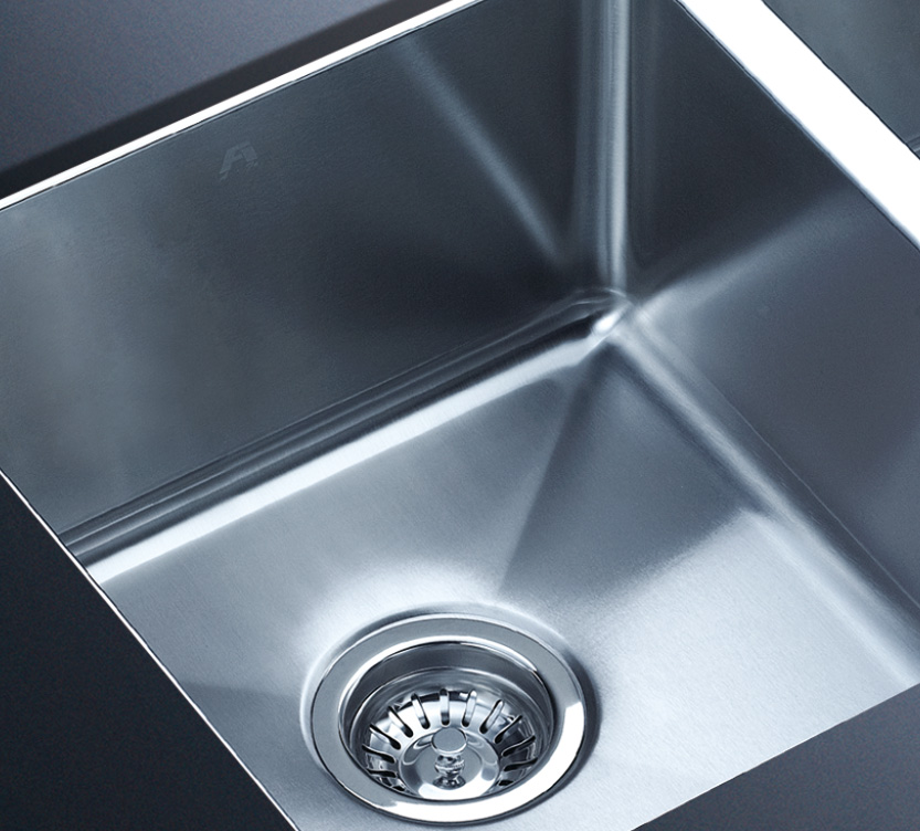 阿發水槽整體經拉絲處理,質地更加光滑,視覺更加柔和。能有效抵擋異物撞擊,刮傷及磨損,防止油污沾染,常用常新;柔和的光澤令水槽平添高雅氣質,更能避免鏡面材質反射的光污染