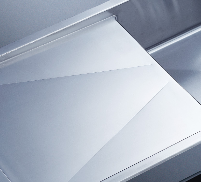 水槽四邊條采用一次成型的折彎加強筋工藝,雙倍堅固,承重力更強,解決了普通焊接工藝容易出現的凹點、脫焊、易割手等問題。專業配置的密封條和固定夾,安裝平整度高,不滲水,不松動